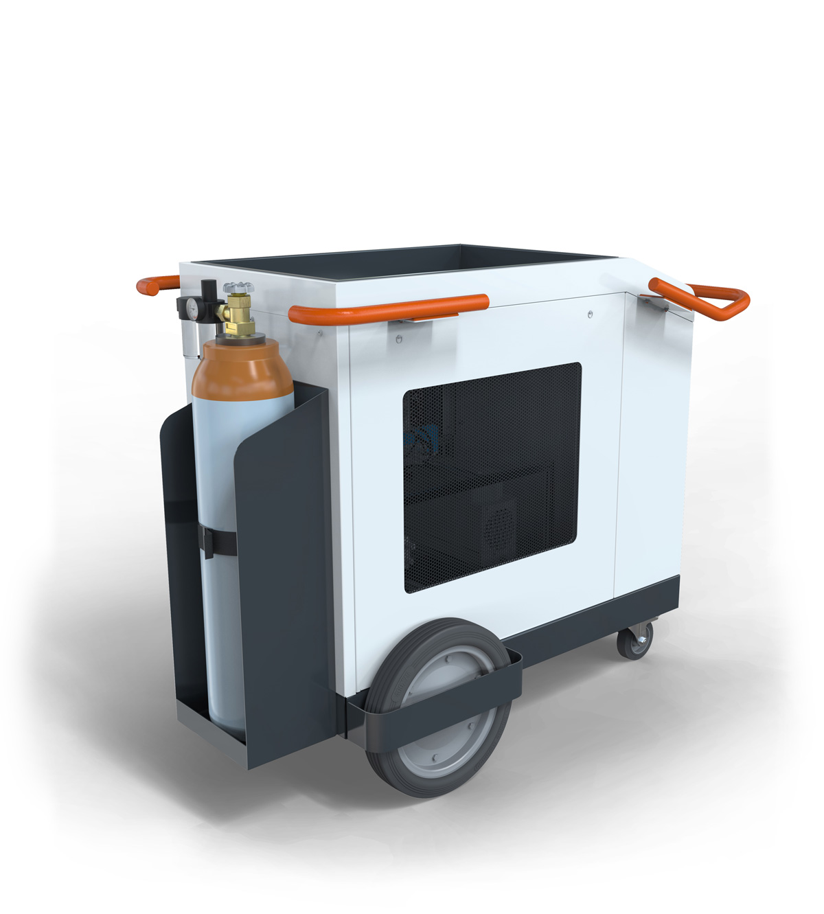 Das MHLS 2000 ist für den flexiblen Einsatz in industriellen Produktionsbereichen konzipiert. Dank seiner schlanken, kompakten Bauweise kann es durch Standard-Industrietüren transportiert und direkt an der Produktionslinie positioniert werden. Der robuste mobile Rahmen integriert Halterungen für Gasflaschen und Staufächer und ermöglicht so den autonomen Betrieb in wechselnden Produktionsumgebungen. Der Betrieb über 230-V-Einphasenstrom vereinfacht die Installation und ermöglicht den temporären oder dezentralen Einsatz ohne zusätzliche Infrastruktur.