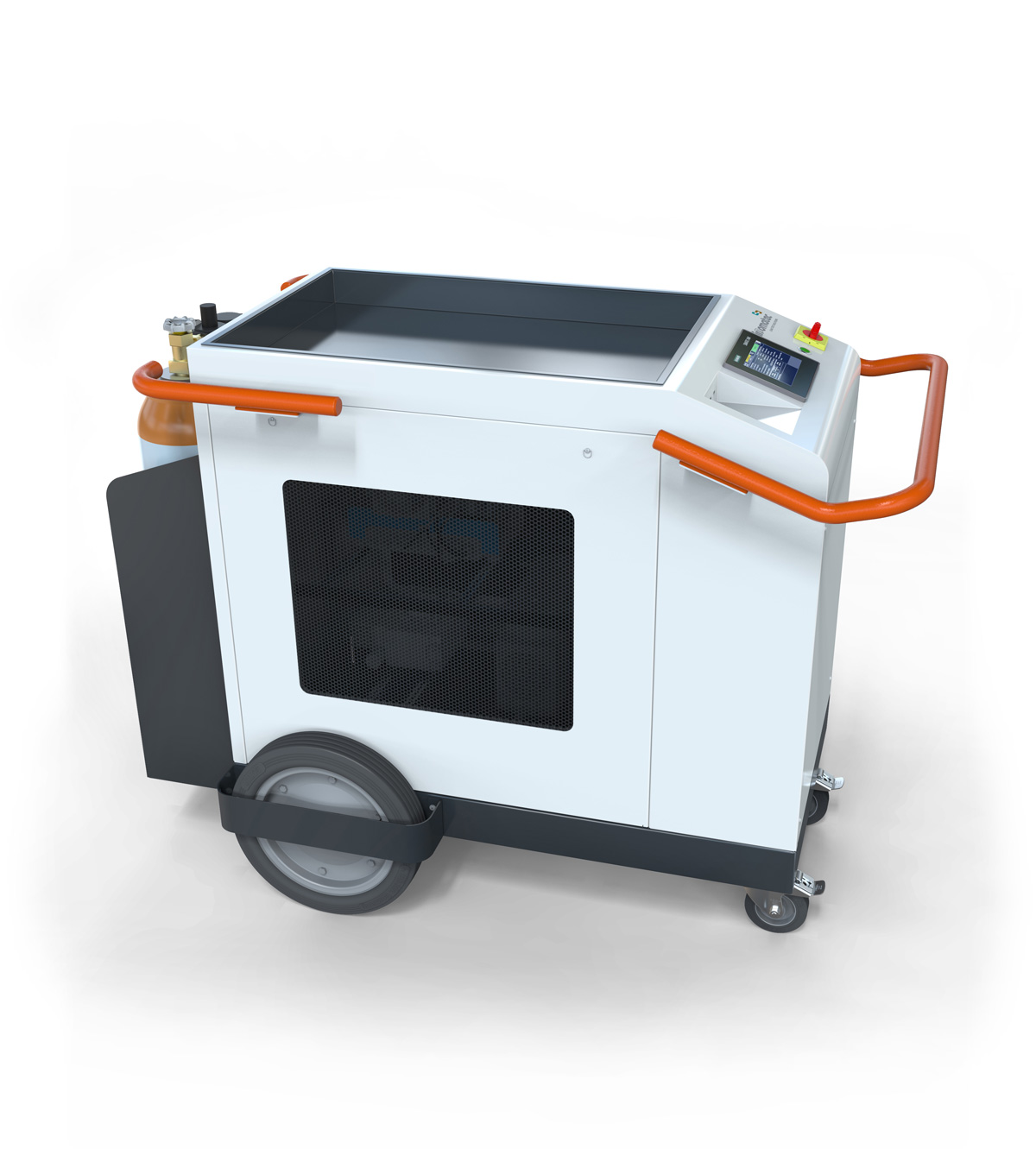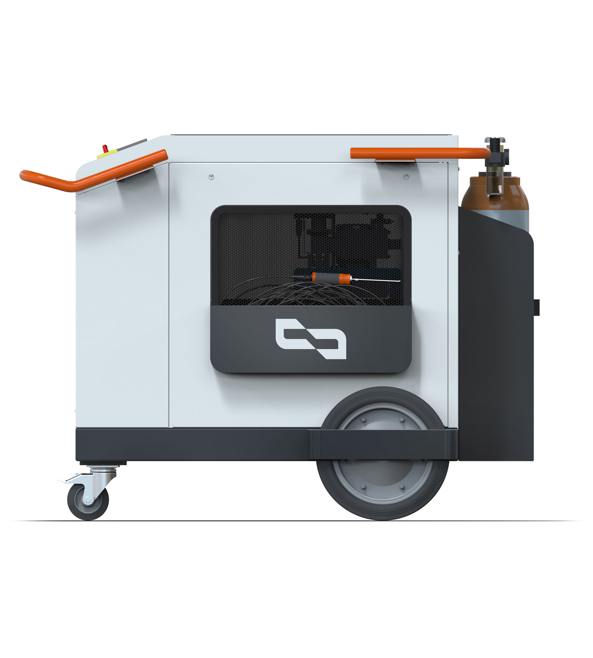 Das MHLS 2000 ist für den flexiblen Einsatz in industriellen Produktionsbereichen konzipiert. Dank seiner schlanken, kompakten Bauweise kann es durch Standard-Industrietüren transportiert und direkt an der Produktionslinie positioniert werden. Der robuste mobile Rahmen integriert Halterungen für Gasflaschen und Staufächer und ermöglicht so den autonomen Betrieb in wechselnden Produktionsumgebungen. Der Betrieb über 230-V-Einphasenstrom vereinfacht die Installation und ermöglicht den temporären oder dezentralen Einsatz ohne zusätzliche Infrastruktur.